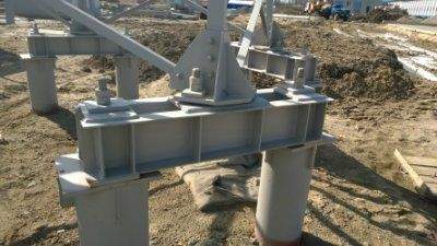 Чаще всего монтаж балок осуществляется на бетонное основание. Однако технология допускает выполнение установки и на металлические сваи. В таком случае используется другой тип болтовых креплений при помощи зажимных пластин толщиной от 8 до 15 мм.